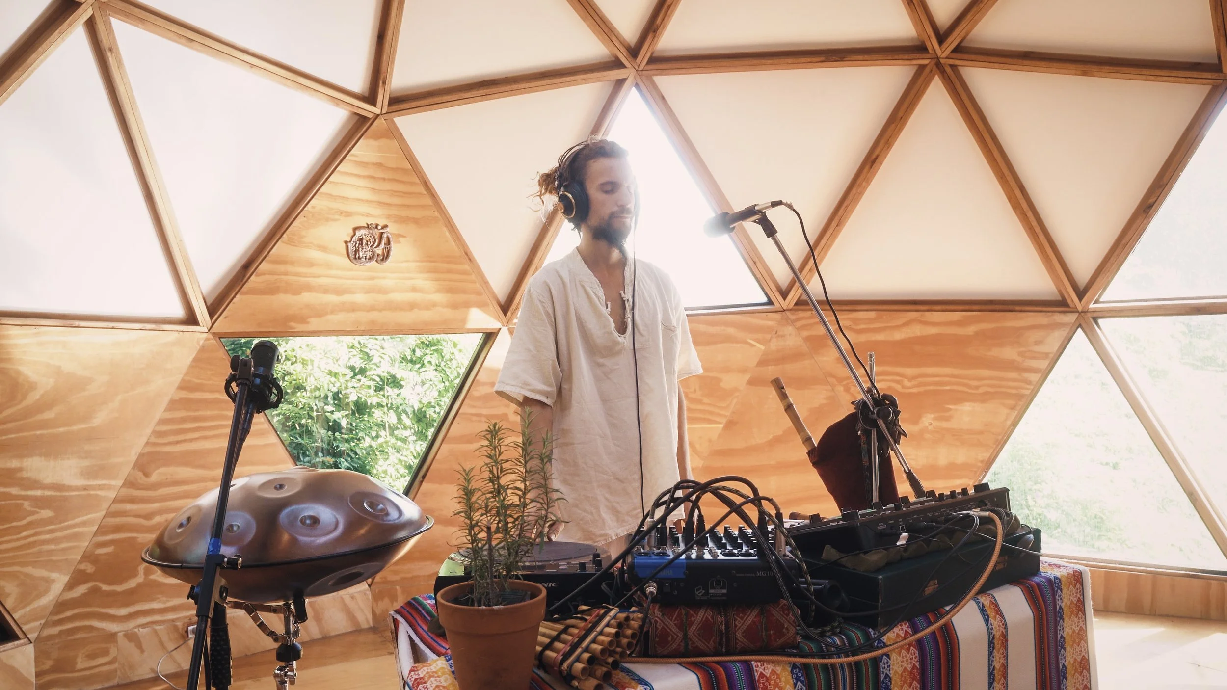The Electro-Organic Live Looping Set is a sound journey created in real-time by blending electronic and ancestral acoustic instruments, quickly immersing us in a sound environment reminiscent of nature and the jungle, a safe, stable space for spontaneous and therapeutic free dance.